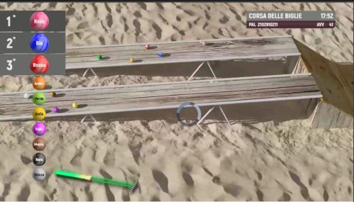 La corsa delle biglie si svolge in un percorso ricavato nella sabbia caratterizzato da ostacoli, dove 10 palline contraddistinte da un diverso colore vengono lasciate rotolare in discesa. Come per Codere virtuali, il percorso si divide in più passaggi che possono rallentare o velocizzare il moto di una biglia; alla fine del percorso vi sono 5 buche dove terminerà la corsa.